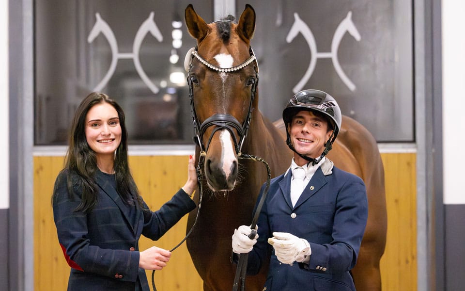 Um die Preisspitze entwickelte sich ein spannendes Bieterduell zwischen zwei Interessentinnen, jeweils Mutter und Tochter, auf den Rängen. Bei 210.000 Euro sauste schließlich das Auktionshämmerchen auf das Pult, die Freude bei den neuen Besitzerinnen aus Hessen entsprechend groß. Der 2020 geborene Hengst Lampo di Fonteabeti v. Franklin/Christ (Z. u. Ausst.: Fonteabeti Soc. Agricola S.R.L, Mercatello sul Metauro/ITA), aus einer sporterfolgreichen Mutter stammend und aus Italien für die Auktion nach Verden gekommen, überzeugte durch seine Bewegungsdynamik und Losgelassenheit. Seine überragende Qualität hatte er bereits im vergangenen Jahr als Finalist der Reitpferdeprüfung der Vierjährigen im Rahmen der Weltmeisterschaft der jungen Dressurpferde in Ermelo/NED unter Beweis gestellt.