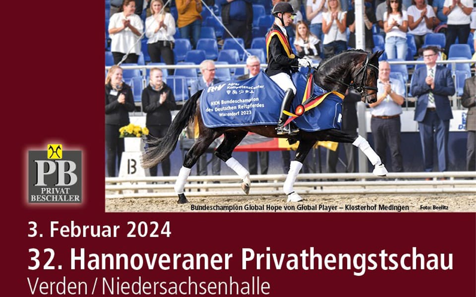 Die Hannoveraner Privathengsthalter laden am 3. Februar zur 32. Hannoveraner Privathengstschau nach Verden ein. Die Stationen präsentieren ihre bewährten und bis in höchste Klassen erfolgreichen Vererber genauso wie ihre interessanten Neuzugänge, Prämienhengste und Bundeschampions.