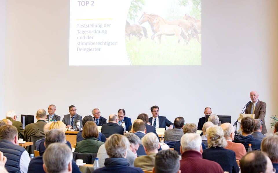 Zur ersten von zwei Delegiertenversammlungen lud der Hannoveraner Verband am 22. Januar nach Verden ein. Dieser Termin wurde zugleich als Informationsveranstaltung für die Vorsitzenden und Geschäftsführer der Pferdezuchtvereine genutzt. So konnten Informationen und Materialen dargestellt werden, die für die anstehenden Pferdezuchtvereinsversammlungen als Grundlage für die Informationsweitergabe an die Mitglieder dienen. Dass in diesem Jahr vor der eigentlichen Delegiertenversammlung (April) bereits eine außerordentliche Delegiertenversammlung stattfand, hatte ein Änderungsvorhaben in der Gremienstruktur sowie Gebührenänderungen zum Grund.
