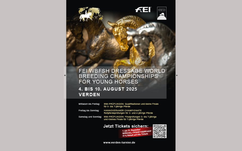 In der Woche vom 4. bis 10. August 2025 werden die besten Dressurtalente der Welt auf dem Turniergelände an der Lindhooper Straße ihre Champions küren. Damit kehren die Weltmeisterschaften wieder zurück an ihren „Geburtsort“ in Verden. 1997 fand in Verden das Pilotprojekt statt. Mittlerweile sind sie der Startpunkt etlicher internationaler Karrieren.