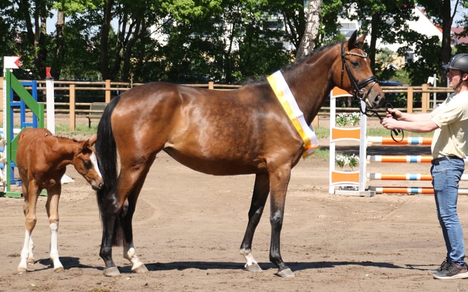 Im Hannoveraner Sporttest Springen konnten sich alle teilnehmenden Stuten in der Springpferdeprüfung der Klasse A** platzieren. An zweiter Stelle rangierte Hann.Pr.A. Cava v. Casallco/Contendro (Z.: ZG Altrock, Pfungstadt) mit Philipp Brodhecker. Die mittelrahmige dunkelbraune Stute überzeugte im Parcours durch Rittigkeit und sicheres Springen. Auch ihre Mutter ist sporterprobt und feierte Erfolge bis zur Klasse M.