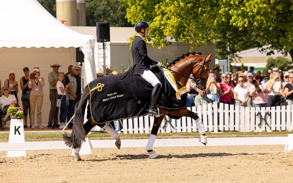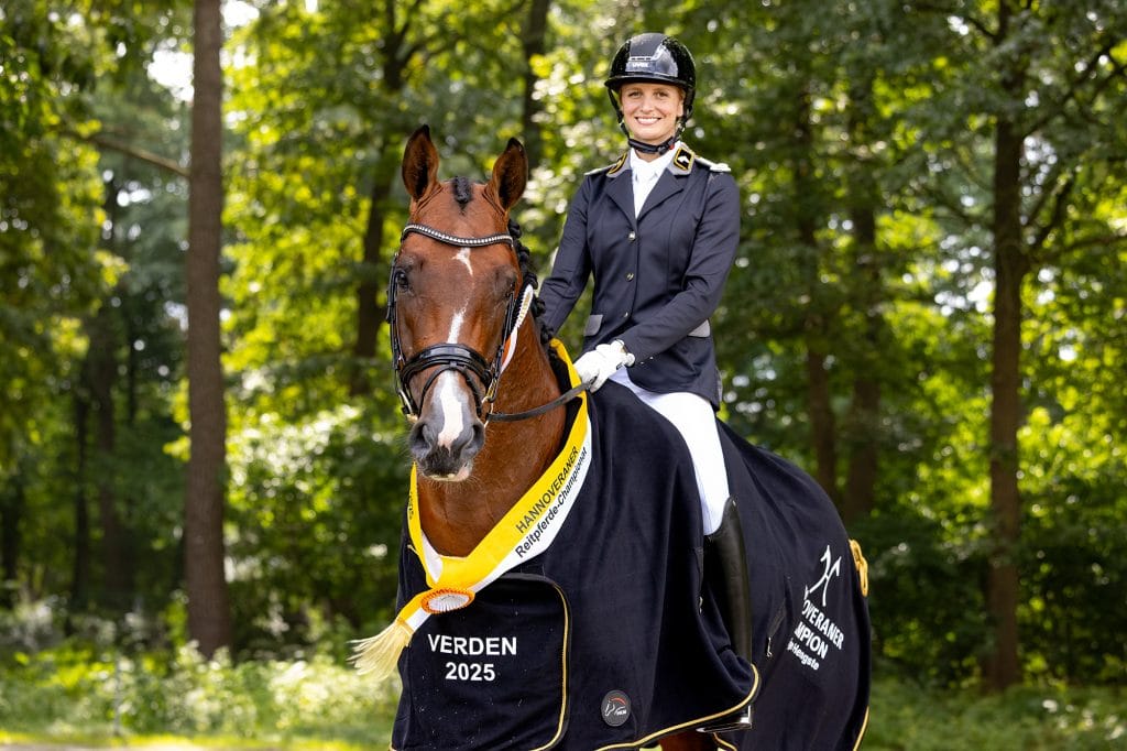 Die ersten Hannoveraner Champions in Verden wurden bei den dreijährigen Stuten und Wallachen gefeiert. Drei Stuten belegten die Medaillenränge: Souverän holte sich die Secret/Sandro Hit-Tochter Hann.Pr.A. Sugar N Spice (Z.: Gestüt W.M., Visselhövede) mit Jessica Lynn Thomas den Sieg. Für den Trab und den Galopp erhielt sie die Tageshöchstnote 9,50. Sie ist keine Geringere als die Halbschwester des Privatbeschälers Bon Coeur, der 2023 mit dem Grande-Preis ausgezeichnet wurde. Vize-Championesse wurde Lily of the Valley v. Livaldon/Fürstenball (Z.: Johannes Hesslink, Emlichheim) mit Daniela Graé im Sattel. Beide Stuten waren am Montag an gleicher Stelle bei der Herwart von der Decken-Schau angetreten. Auf dem Bronzerang lag die Santos/Finest-Tochter Salvina (Z.: Hartwig Bulle, Lüdingworth), die von Leslie Rohrbacher in Szene gesetzt wurde.