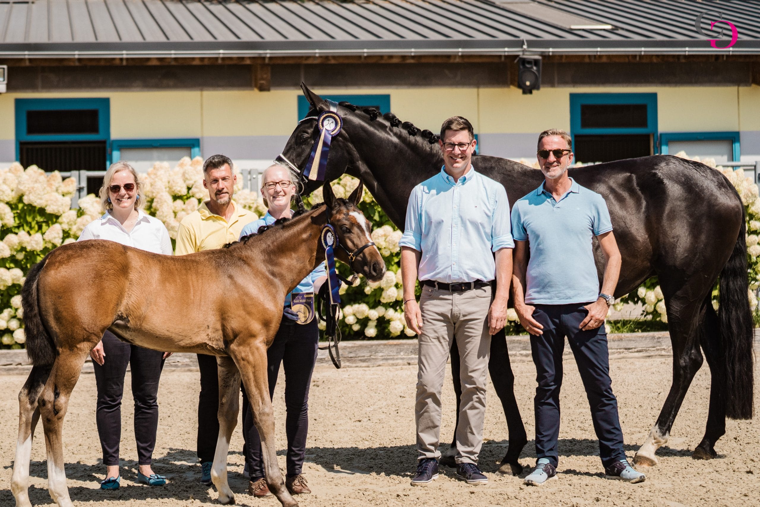 Siegerstute in der Schau wurde Flavia K von Fürsten-Look aus der Hann.Pr. Danubia v. Duke Ellington/Embassy aus der Zucht und im Besitz von Mag.Dr. Susanna Kleindienst. Die vierjährige Dunkelbraune zeigte sich besonders im Freilaufen mit sehr guter Balance im Trab und Galopp, sowie sehr harmonischem und korrektem Exterieur. Sie legte zudem die beste Prüfung unter dem Reiter ab. Zwei weitere Stuten wurden mit der Anwartschaft auf die Hannoveraner Prämie ausgezeichnet. Die dreijährige Vanity Fair v. Vaderland/Embassy (Z.u.B.: Mag.Dr. Susanna Kleindienst, Walsrode) sowie die vierjährige Dornröschen FREEmotion’s von Don Romance aus der St.Pr. Deja Vu von Don Crusador/Rotspon (Z.u.B.: Dr. Elke Standeker, Stübing). Dornröschen führte ihr erstes Fohlen von Escanto PS bei Fuß. Das typvolle und korrekte Stutfohlen wurde zuvor mit einer Gold-Medaille des Bezirksverbandes International prämiert.