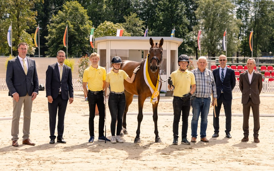 Ausgehend von einer erworbenen Ramiro Stute hat sich die Familie zur Lage einen weiteren sportlich erfolgreichen Zweig eröffnet: Über St.Pr. Staccia v. Stakkato und ihrer Tochter Hann.Pr. Versace v. Verdi stellt Familie Johannes zur Lage mit Hann.Pr.A. Exquise die Siegerstute Springen auf der Herwart von der Decken-Schau 2024. Wir wünschen weiterhin viel Erfolg!