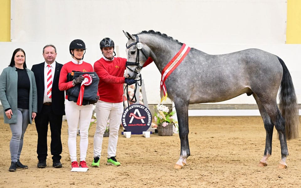 40 Hengste stellten sich im Rahmen der AWÖ Hengsttage im Pferdezentrum Stadl-Paura der österreichischen Körkommission. Der Reservesieger der Springhengste kam aus Hannover. Auf der Fohlenauktion 2021 hatte ein Stammkunde aus Oberösterreich den richtigen Riecher und sicherte sich einen Khedira/Odermus R-Sohn (Z.: Heinrich Baldrich, Neustadt). Auf den Namen Kottan getauft, überzeugte der Schimmel vier Jahre später bei seiner Körung als „großrahmiges, edles, sportives Hengstmodell, mit viel Körperharmonie ausgestattet – so wie wir es uns wünschen.“ Auch der ein Jahr jüngere Dirk SK v. Diamant van Klapscheut Z/Calido (Z.: Tanja Martens, Toppenstedt) aus dem Stamm der Haubenlerche erhielt grünes Licht in der Alpenrepublik.