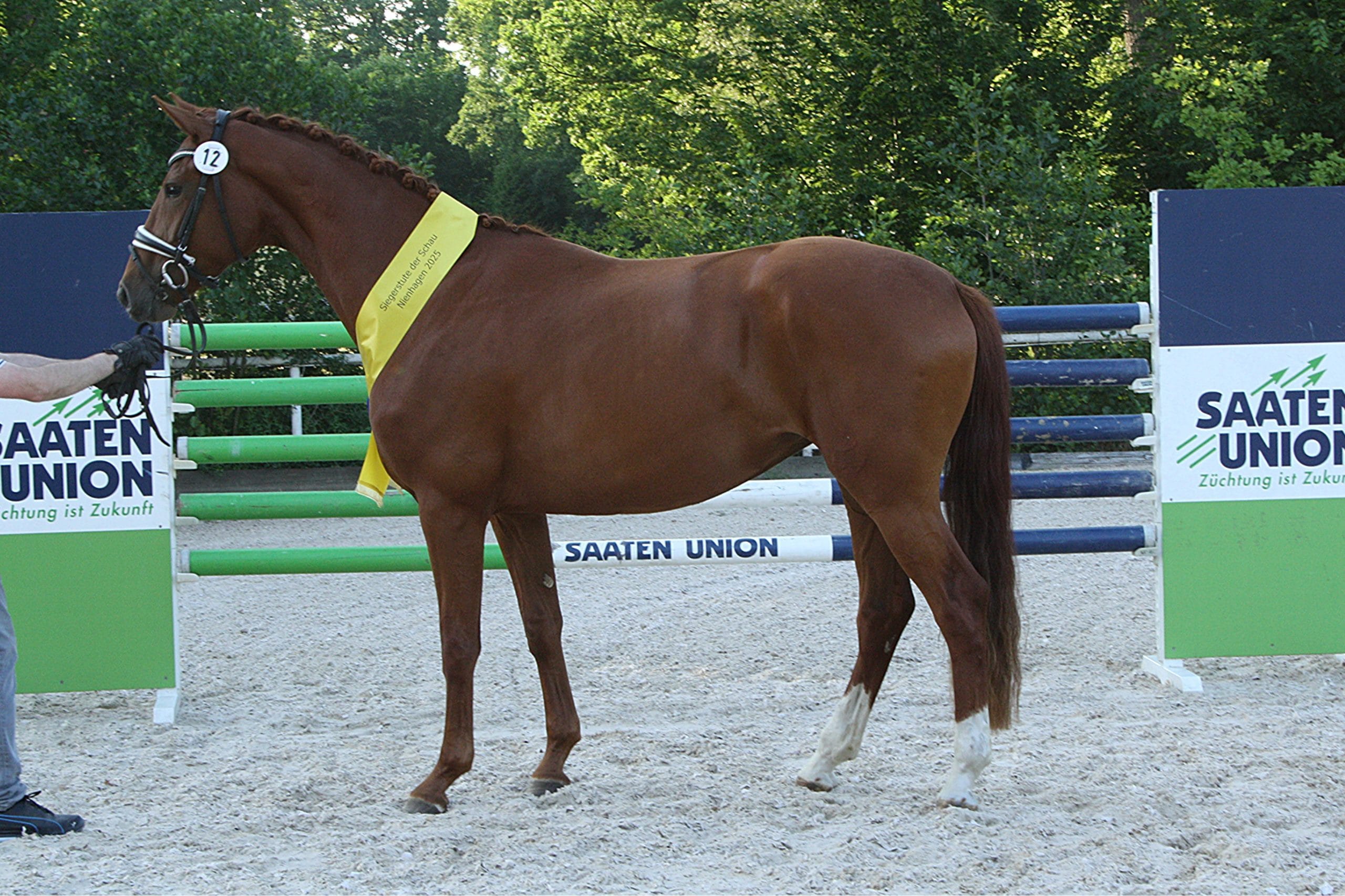 Eine weitere Klasse dreijähriger Dressurstuten wurde von Hann.Pr.A. Rock Flame v. Rock Springs/San Remo (Z.: Kai Ehlers, Freiburg, Bes.: Gestüt Allerhop, Hambühren) gewonnen. Die typstarke und stabile Enkeltochter der einstigen Bundessiegerstute St.Pr.St. Waitaki v. Weltmeyer und Vollschwester des Prämienhengstes Rockson bewegte sich kraftvoll und großzügig.