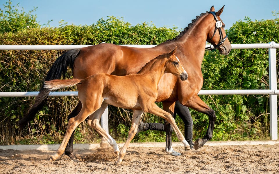 Petra Schöning hatte im Gegensatz zu den Vorjahren diesmal nur ein „heißes Hufeisen“ im Feuer. Und das hat die Erwartungen der Züchterin auch mehr als erfüllt. Ihr dressurbetontes Hengstfohlen Centucky Joe (Cadeau Noir x Totilas) verwies alle anderen Konkurrenten in die Schranken und löste somit das Ticket für Lienen. Damit folgte der kleine Hengst seiner Mutter Thunderstruck, der vor 13 Jahren das gleiche Kunststück gelang.