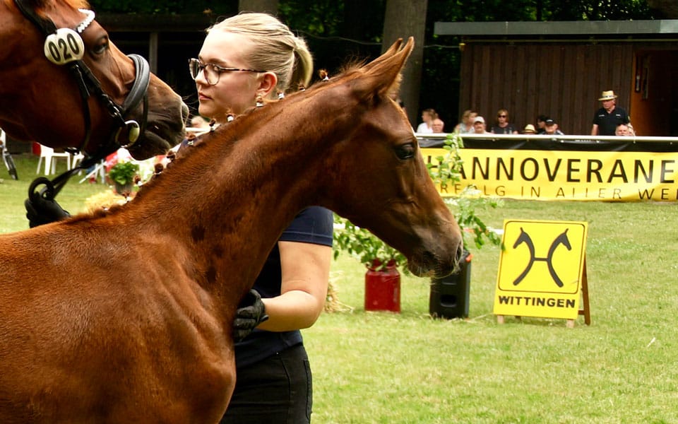 Zunächst wurden die springbetonten Fohlen beurteilt. Bei den Stutfohlen stellten die Richter eine Diathletico/Quickthago/For Edition-Tochter aus der Zucht von Hartmut Knop aus Gilde an die Spitze. Auch bei den Hengstfohlen siegte ein Nachkomme des Celler Landbeschälers Diathletico. Vorgestellt wurde dieses Fohlen v. Diathletico/Mighty Magic/Forrest xx von der Hagemann GbR aus Bottendorf. Die beiden Siegerfohlen wurden zusätzlich mit der goldenen Fohlenprämie ausgezeichnet. Danach folgten die dressurbetonten Fohlen. Ein Stutfohlen v. Barbarossa/Von Und Zu/Hohenstein mit überragenden Bewegungen aus der Zucht von Henning Lütkemüller aus Vorhop setzte sich an die Spitze. Bei den Hengstfohlen gab es Höchstnoten für ein Fohlen v. Bonds/De Niro/Eiger aus der Zucht von Friederike Pelzer aus Lüsche. Auch diese beiden Fohlen wurden mit der goldenen Fohlenprämie ausgezeichnet. Alle Siegerfohlen haben sich für das Lüneburger Elitechampionat in Beedenbostel qualifiziert. „Wir haben heute eine Kollektion mit vielen qualitätvollen Fohlen gesehen“, so Dr. Hinni Lührs-Behnke.