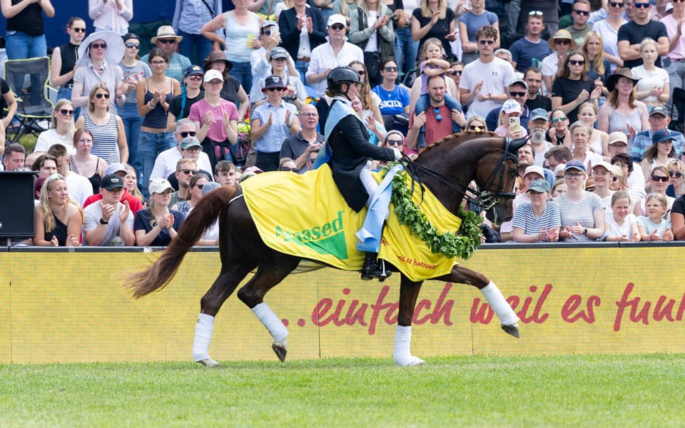 Die Entscheidung zur Teilnahme am Dressur-Derby war erst zu Jahresbeginn gefallen. „Das ist schon ein sehr besonderes Erlebnis,” strahlte Anna-Lena Kracht. „Am großen Derby teilzunehmen und direkt ins Finale zu kommen, war für mich schon ein ganz großer Erfolg. Und nun auch noch als glücklich Siegerin da raus zu gehen, ist für mich unbeschreiblich.” Im Finale des Derbys belegte Felix Kneese und San Simeon Platz zwei. Das Podium komplettierte Kristin Biermann mit Queensland. „Die Gelegenheit, im Finale zwei andere Grand Prix-Pferde zu reiten war sehr spannend und ereignisreich. Beide Pferde waren toll zu reiten”, sagte die frichgebackene Trägerin des begehrten und prestigeträchtigen Blauen Bandes