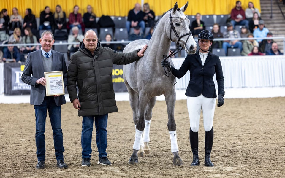 Zwei Springhengste überzeugten im Dezember des vergangenen Jahres beim 50-Tage-Test in Adelheidsdorf und werden für ihre überragenden Ergebnisse mit dem Stakkato-Preis belohnt. Der Arezzo VDL/Cornado-Sohn Acorezzo (Z.: Antonius Schulze-Averdiek, Rosendahl) überzeugte schon als Prämienhengst bei seiner Körung in Verden. Richard Vogel und David Will sicherten sich den Rohdiamanten, dessen Mutter die Halbschwester des international erfolgreichen Privatbeschälers Fire and Ice ist. Beim 50-Tage-Test belohnte Acorezzo das Vertrauen mit der Endnote 8,41.