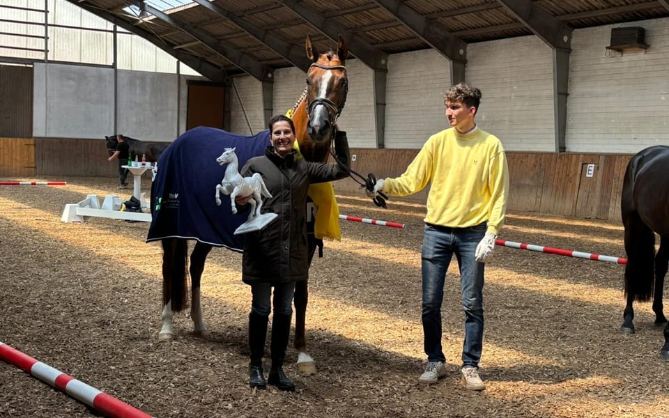 Insgesamt 13 Stuten, darunter zwei springbetonte Stuten, legten in Hahausen auf der Anlage der Familie Klatt ihre Zuchtstutenprüfung ab. Zwei weitere dressurbetonte Stuten wurden ebenfalls im Freispringen gezeigt. Die Gesamtqualität der Stuten war sehr gut, besonders die Rittigkeit der jungen Stuten war positiv zu bewerten.